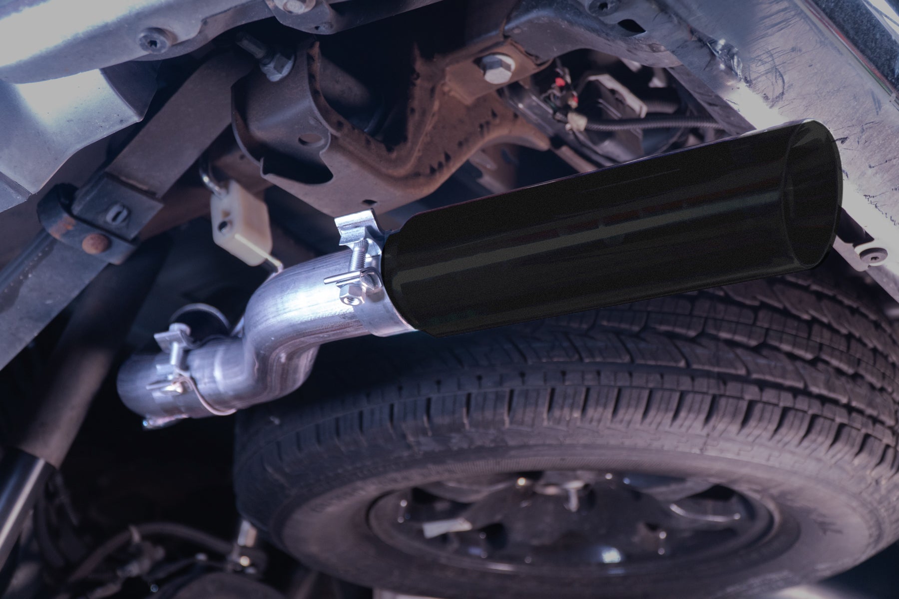 The high-performance exhaust system is designed for 2007, 2008, 2009, 2010, 2011, 2012, 2013, 2014, 2015, 2016, 2017, 2018, 2019, 2020, 2021, 2022, 2023, 2024 Chevy Silverado and GMC Sierra 1500 models, offering a medium to aggressive sound. This system is constructed from durable 409 stainless steel, with highly polished 304 stainless steel tips for a sleek finish. The system features a true chambered muffler design with no packing material, and a 4" double wall tip. It can be installed as a dual rear or side exit, with all necessary hangers and hardware included for ease of installation. The system is designed to enhance power and mileage, and is backed by a lifetime limited warranty. Please note, this system does not fit HD models.