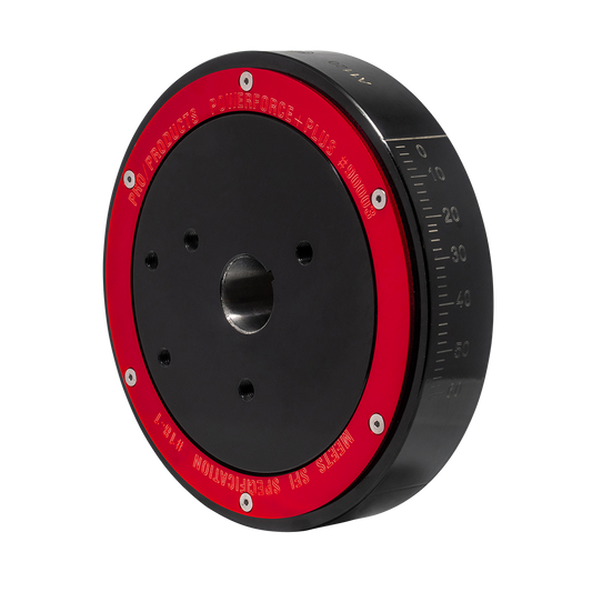 Professional Products Powerforce+Plus line of harmonic balancers meet SFI Specifications which allows them to be used in organized racing events. Made of maximum strength 1045 steel, these are the ultimate in a racing balancer. These balancers are designed so that if an unlikely failure allows the inertia ring to come loose, it is captured onto the hub and cannot fly off. This is the ultimate racing damper but can also be used on street applications.