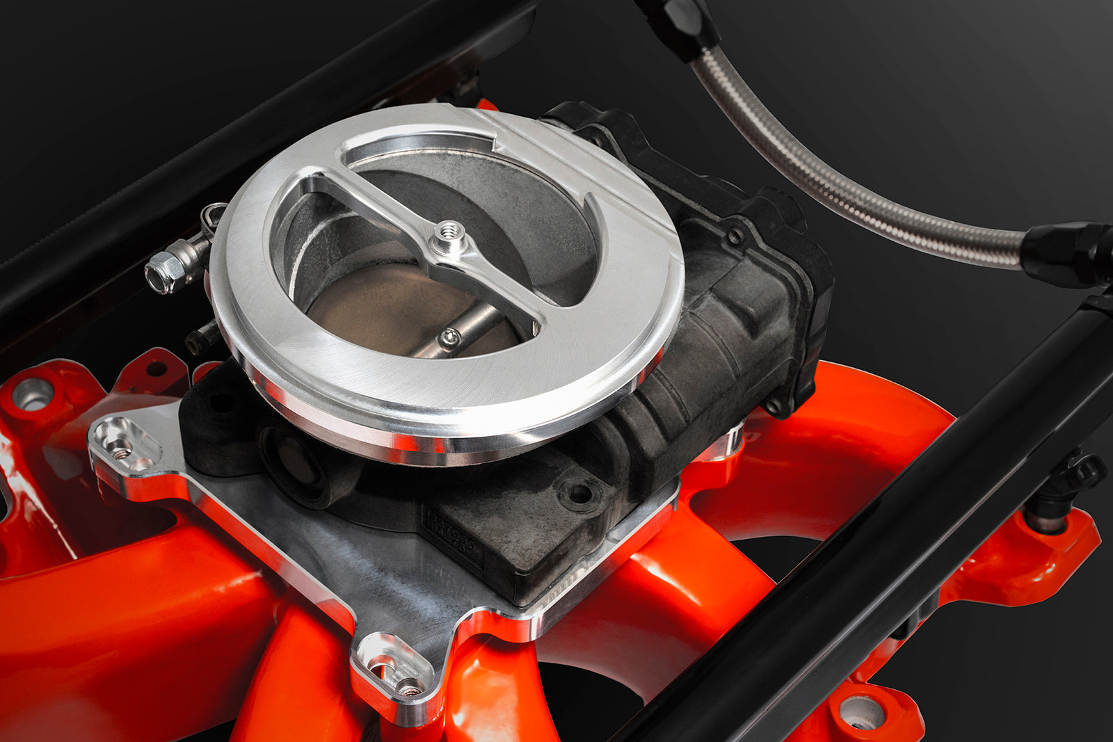 We paired each manifold with a Billet Throttle Body and Air Cleaner Adapter that lets you retain your factory LS3, 6.0L or 5.3L drive-by-wire throttle body.